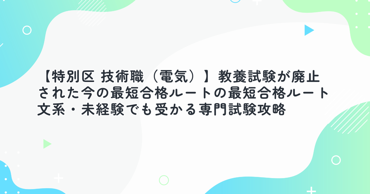 - 最近の制度改定により、技術区分(電気・機械・建築など)では 一次試験で教養試験を廃止し、専門試験のみを課す方式 に変更されました。