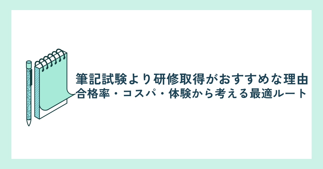 研修取得(講習方式)をおすすめする理由を、合格率・コスパ・時間効率の観点から解説します。