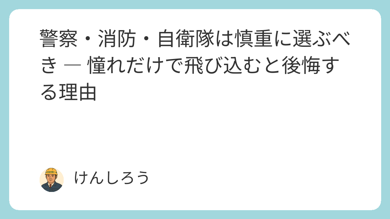 警察・消防・自衛隊は、「憧れ」ではなく「覚悟」で選ぶこと。