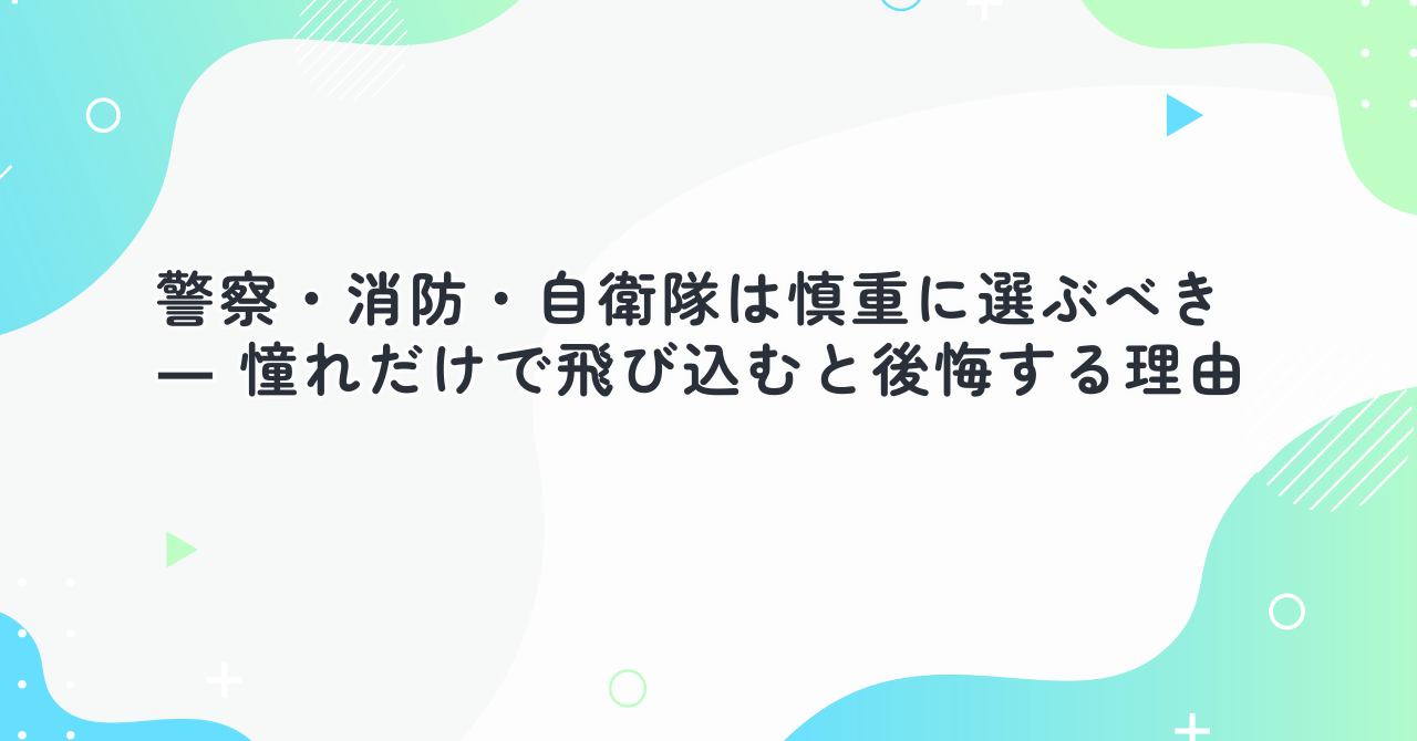 警察・消防・自衛隊は、「憧れ」ではなく「覚悟」で選ぶこと。