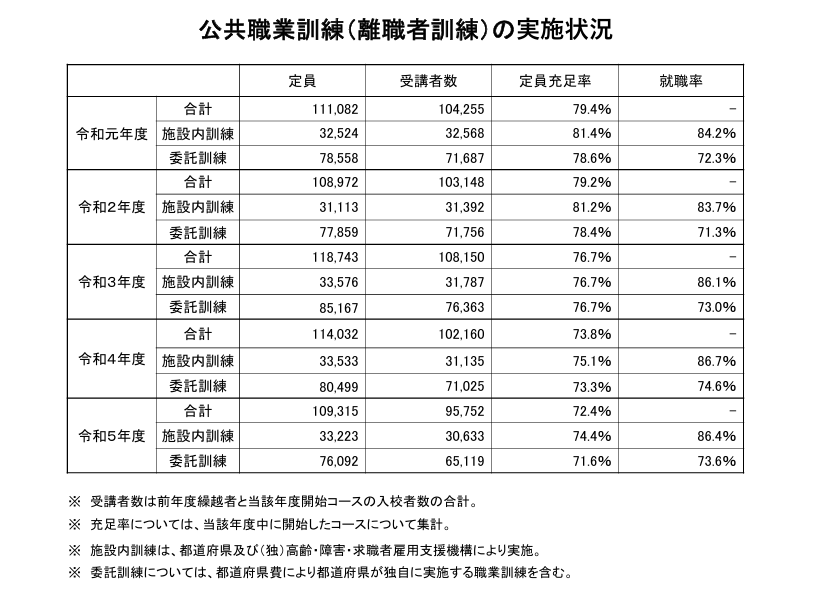 (出典:厚生労働省『ハロートレーニング(公的職業訓練)の実施状況(全体版)』5頁参照)。