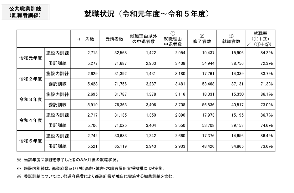 統計から見えてくるのは、公的職業訓練が一定の就職成果を上げ続けているという事実である。