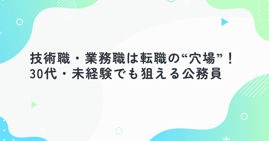 技術職・業務職は転職の“穴場”!30代・未経験でも狙える公務員