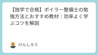 ビルメン 【独学で合格】ボイラー整備士の勉強方法とおすすめ教材|効率よく学ぶコツを解説 ボイラー整備士試験を独学で最短1か月・30時間で合格する方法を紹介。過去問中心の勉強法、使った教材、効率的なスケジュールの立て方を実体験から解説。 2025.10.02 ビルメン資格勉強方法